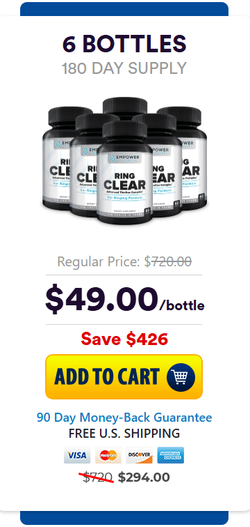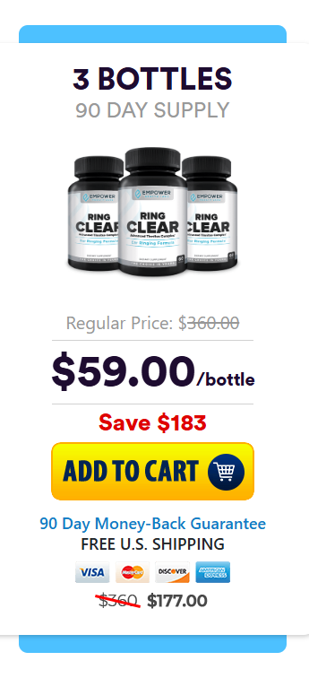 Learn More About Ring Clear's 90-Day GuaranteeThis exclusive promotion for **Ring Clear** won't last forever. Due to high demand, our stock is limited. Act now to secure your supply at this special price and begin your journey toward **optimal auditory health**. Don't miss this chance to experience the benefits yourself, backed by our **90-Day Money-Back Guarantee** and free shipping on qualifying orders!